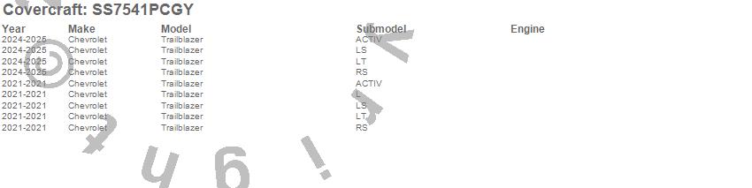 Below is an abbreviated list of applications for the SeatSaver Custom Seat Cover.Trailblazer, Chevrolet, 2025, 2024, 2021