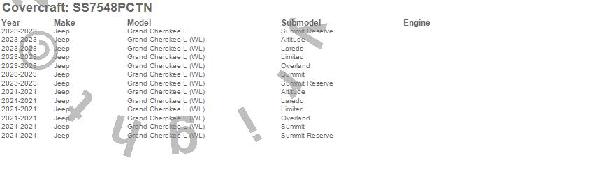 Below is an abbreviated list of applications for the SeatSaver Custom Seat Cover.Grand Cherokee L, Grand Cherokee L (WL), Jeep, 2025, 2024, 2023, 2021