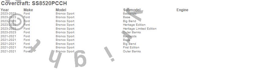 Below is an abbreviated list of applications for the SeatSaver Custom Seat Cover.Bronco Sport, Ford, 2025, 2024, 2023, 2021