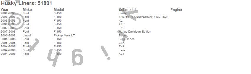 Below is an abbreviated list of applications for the X-act Contour Floor Liner.F-150, Mark LT, Ford, Lincoln, 2008, 2007, 2006, 2005, 2004