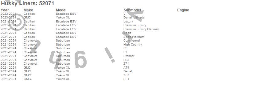 Below is an abbreviated list of applications for the X-act Contour Floor Liner.Escalade ESV, Suburban, Yukon XL, Cadillac, Chevrolet, GMC, 2026, 2025, 2024, 2023, 2022, 2021