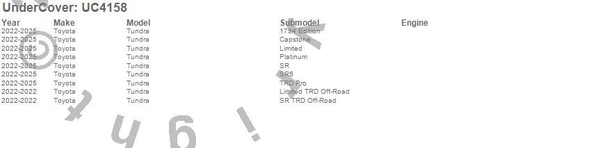 Brand: UnderCoverPart Number: UC4158Tonneau Cover Type: Black TexturedUPC: 840114322410