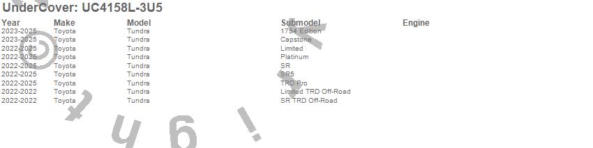 Brand: UnderCoverPart Number: UC4158L-3U5Tonneau Cover Type: Emotional Red 2 Metallic - Paint Code 3DU5UPC: 840114322229