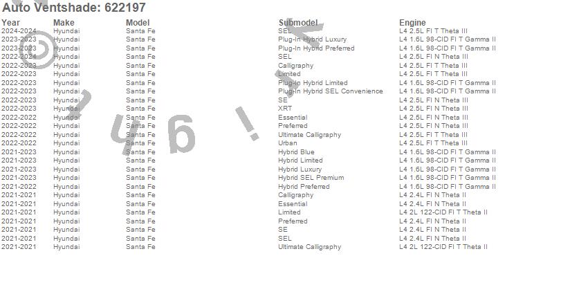 Below is an abbreviated list of applications for the Aeroskin Chrome Hood Protector.Santa Fe, Hyundai, 2023, 2022, 2021