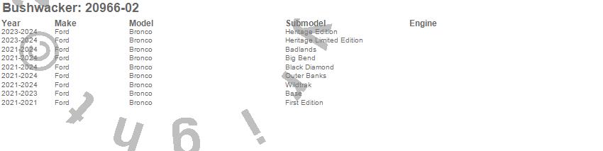 Below is an abbreviated list of applications for the Extend-A-Fender Flares.Bronco, Ford, 2025, 2024, 2023, 2022, 2021
