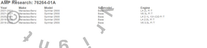 Below is an abbreviated list of applications for the PowerStep Plug-N-Play System.Sprinter 2500, Mercedes-Benz, 2021, 2020, 2019