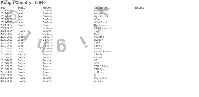 Below is an abbreviated list of applications for the High Steer Drag Link Kit.Gladiator, Tacoma, Jeep, Toyota, 2023, 2022, 2021, 2020, 2019, 2018, 2017, 2016, 2015, 2014, 2013, 2012, 2011, 2010, 2009, 2008