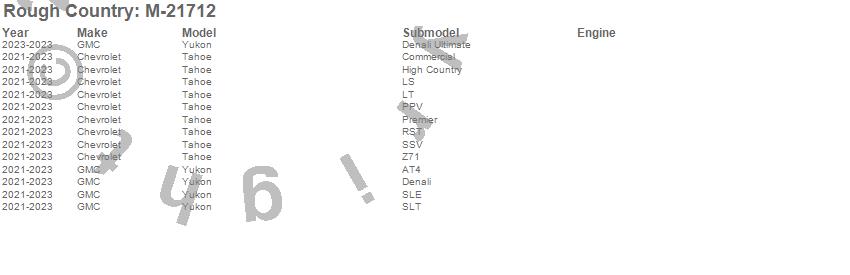 Below is an abbreviated list of applications for the Heavy Duty Floor Mats.Tahoe, Yukon, Chevrolet, GMC, 2025, 2024, 2023, 2022, 2021
