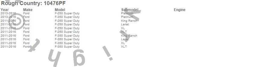 Below is an abbreviated list of applications for the Cold Air Intake.F-250 Super Duty, F-350 Super Duty, Ford, 2016, 2015, 2014, 2013, 2012, 2011