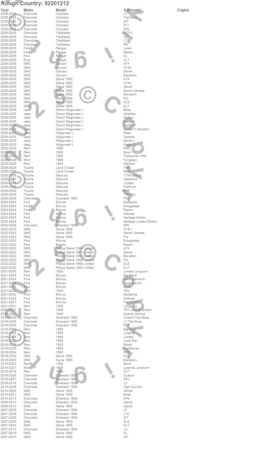 Below is an abbreviated list of applications for the Series 92 Wheel.1500, 4Runner, Bronco, Canyon, Colorado, Escalade, Grand Wagoneer L, Land Cruiser, Pickup Sierra 1500 Limited, Ranger, Sequoia, Sierra 1500, Silverado 1500, Suburban, Tahoe, Trailblazer, Wagoneer L, Cadillac, Chevrolet, Ford