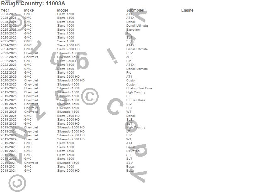 Below is an abbreviated list of applications for the SRX2 Side Steps.Sierra 1500, Sierra 2500 HD, Silverado 1500, Silverado 2500 HD, Chevrolet, GMC, 2025, 2024, 2023, 2022, 2021, 2020, 2019