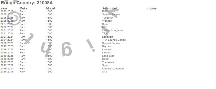 Brand: Rough CountryPart Number: 31008ANerf/Step Bar Type: Adjustable - AluminumUPC: 840269902062