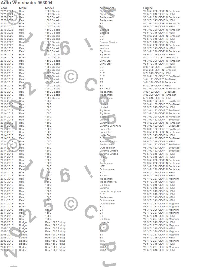 Below is an abbreviated list of applications for the Aeroskin LightShield Pro Hood Protector.1500, 1500 Classic, Ram 1500, Dodge, Ram, 2023, 2022, 2021, 2020, 2019, 2018, 2017, 2016, 2015, 2014, 2013, 2012, 2011, 2010, 2009