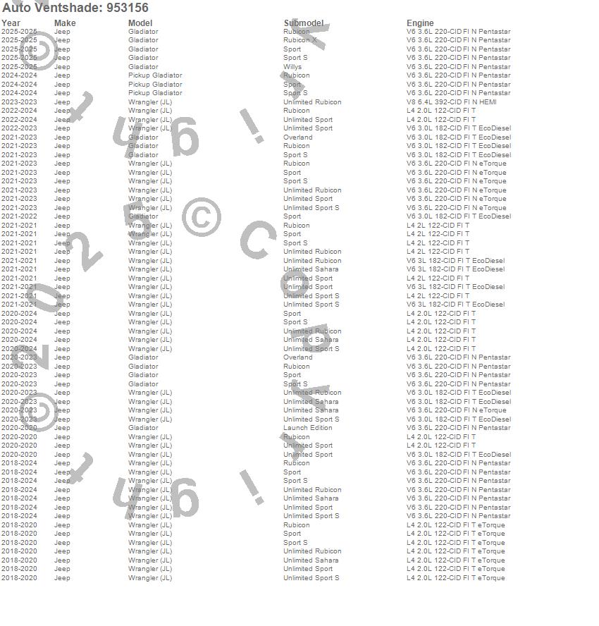 Below is an abbreviated list of applications for the Aeroskin LightShield Pro Hood Protector.Gladiator, Grand Cherokee (WL), Pickup Gladiator, Wrangler, Wrangler (JL), Jeep, 2026, 2025, 2024, 2023, 2022, 2021, 2020, 2019, 2018