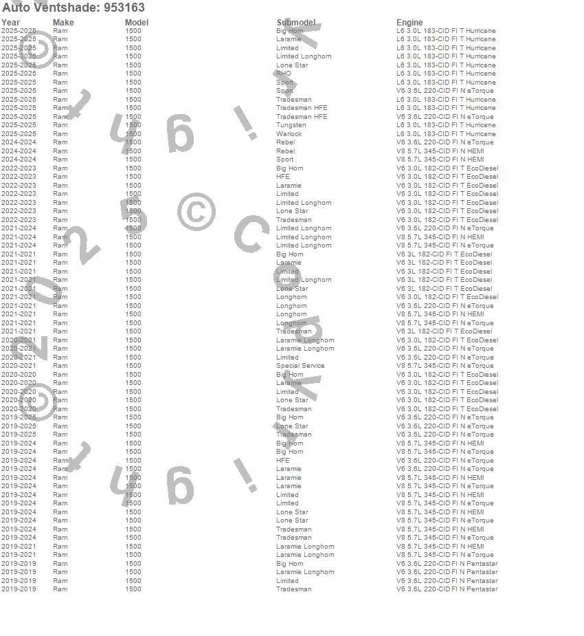 Below is an abbreviated list of applications for the Aeroskin LightShield Pro Hood Protector.1500, Ram, 2025, 2024, 2023, 2022, 2021, 2020, 2019