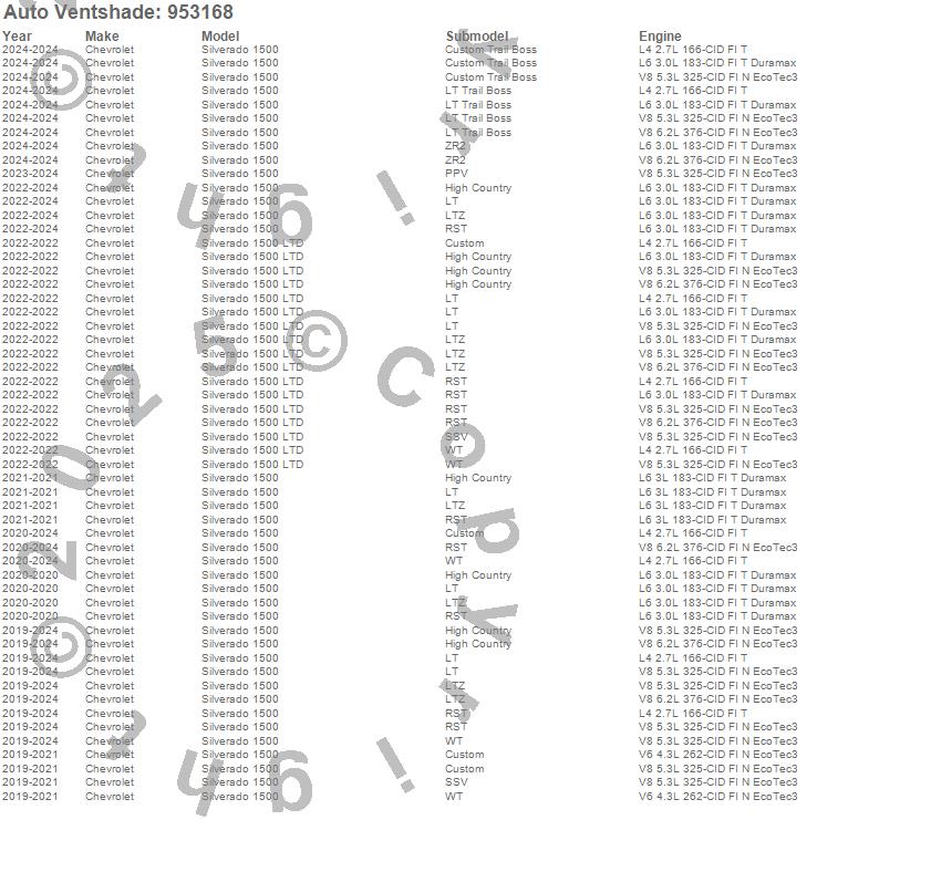 Below is an abbreviated list of applications for the Aeroskin LightShield Pro Hood Protector.Silverado 1500, Silverado 1500 LTD, Chevrolet, 2026, 2024, 2023, 2022, 2021, 2020, 2019