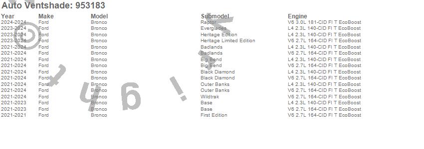 Below is an abbreviated list of applications for the Aeroskin LightShield Pro Hood Protector.Bronco, Ford, 2024, 2023, 2022, 2021