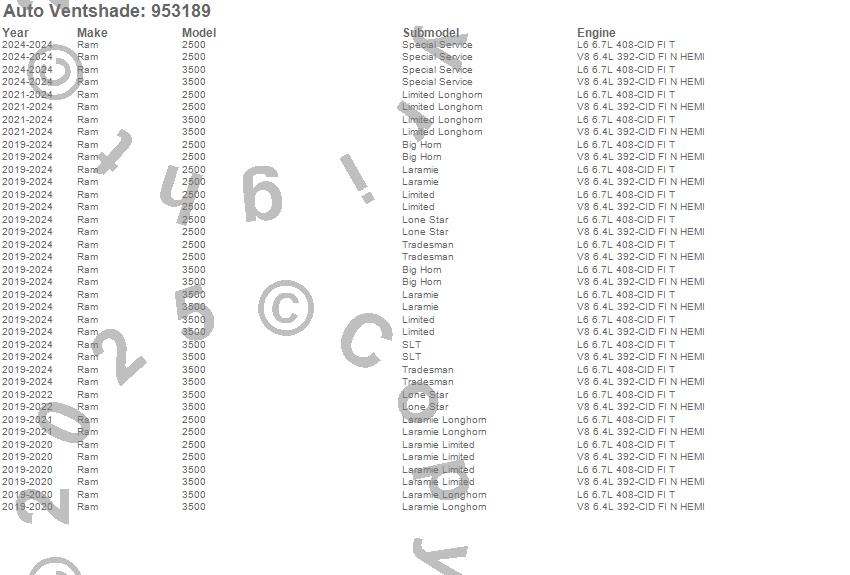 Below is an abbreviated list of applications for the Aeroskin LightShield Pro Hood Protector.2500, 3500, Ram, 2025, 2024, 2023, 2022, 2021, 2020, 2019