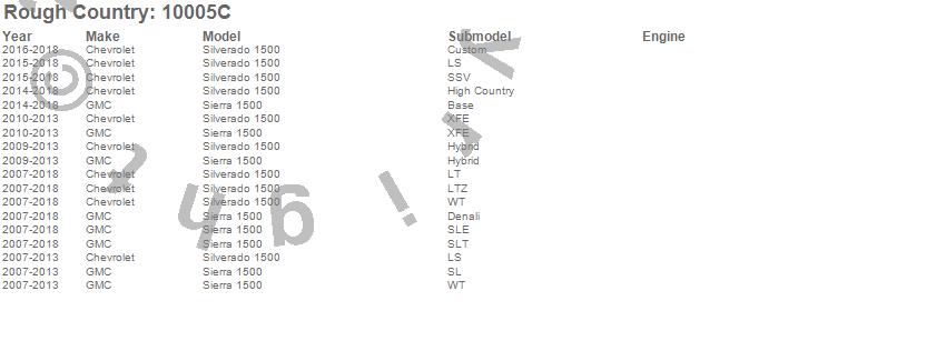 Below is an abbreviated list of applications for the Air Spring Kit.Sierra 1500, Silverado 1500, Chevrolet, GMC, 2018, 2017, 2016, 2015, 2014, 2013, 2012, 2011, 2010, 2009, 2008, 2007