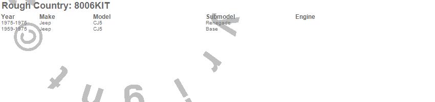 Brand: Rough CountryPart Number: 8006KITLeaf Spring Type: Rear - 2.5 in. - 44.25 in. Length - 6 in. Uncompressed Arch - 23.25 in. Uncompressed Half LengthUPC: 840269908989