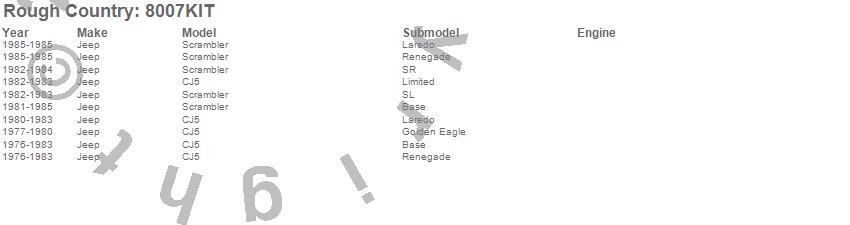 Below is an abbreviated list of applications for the Leaf Spring.CJ5, Scrambler, Jeep, 1985, 1984, 1983, 1982, 1981, 1980, 1979, 1978, 1977, 1976