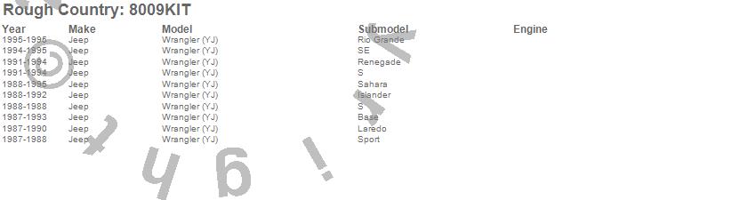 Below is an abbreviated list of applications for the Leaf Spring.Wrangler (YJ), Jeep, 1995, 1994, 1993, 1992, 1991, 1990, 1989, 1988, 1987