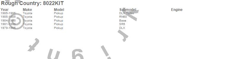 Below is an abbreviated list of applications for the Leaf Spring.Pickup, Toyota, 1985, 1984, 1983, 1982, 1981, 1980, 1979