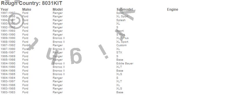 Below is an abbreviated list of applications for the Leaf Spring.Bronco II, Ranger, Ford, 1997, 1996, 1995, 1994, 1993, 1992, 1991, 1990, 1989, 1988, 1987, 1986, 1985, 1984, 1983