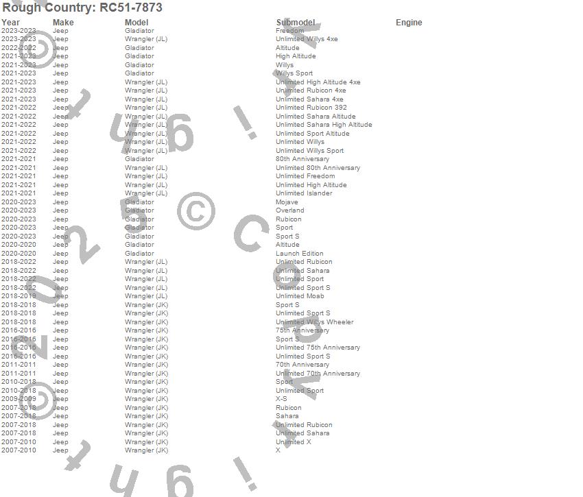 Below is an abbreviated list of applications for the Black Series Daytona.Gladiator, Wrangler (JK), Wrangler (JL), Jeep, 2023, 2022, 2021, 2020, 2019, 2018, 2017, 2016, 2015, 2014, 2013, 2012, 2011, 2010, 2009, 2008