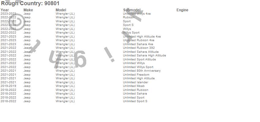 Brand: Rough CountryPart Number: 90801Rocker Panel Guard Type: 2 pc. - Incl. HardwareUPC: 840269904011