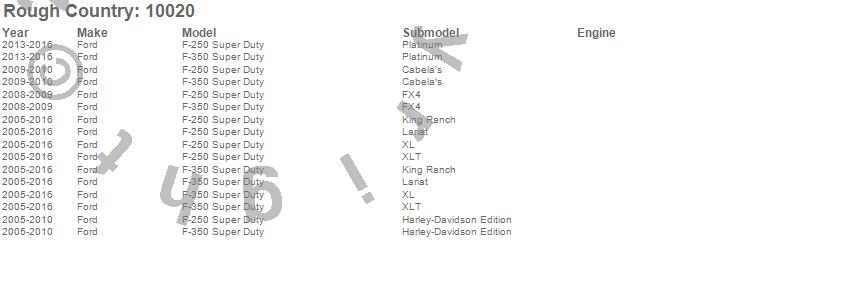 Below is an abbreviated list of applications for the Air Spring Kit.F-250 Super Duty, F-350 Super Duty, Ford, 2016, 2015, 2014, 2013, 2012, 2011, 2010, 2009, 2008, 2007, 2006, 2005
