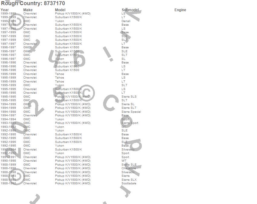 Below is an abbreviated list of applications for the Steering Stabilizer.K1500, K1500 Pickup, K1500 Suburban, Tahoe, Yukon, Chevrolet, GMC, 1999, 1998, 1997, 1996, 1995, 1994, 1993, 1992, 1991, 1990, 1989, 1988