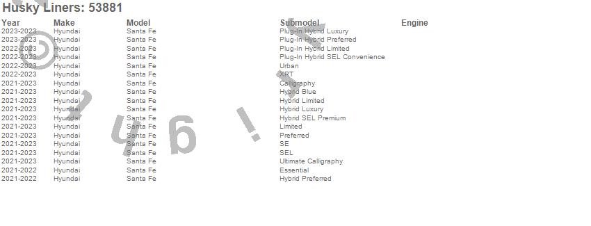 Below is an abbreviated list of applications for the X-act Contour Floor Liner.Santa Fe, Hyundai, 2023, 2022, 2021