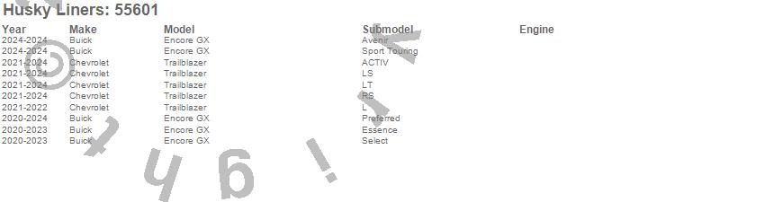 Below is an abbreviated list of applications for the X-act Contour Floor Liner.Encore GX, Trailblazer, Buick, Chevrolet, 2025, 2024, 2023, 2022, 2021, 2020
