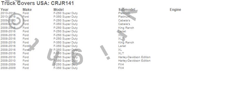 Below is an abbreviated list of applications for the American Work Cover JR..F-250 Super Duty, F-350 Super Duty, Ford, 2016, 2015, 2014, 2013, 2012, 2011, 2010, 2009, 2008