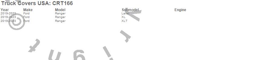 Brand: Truck Covers USAPart Number: CRT166Tonneau Cover Type: 60 in. - Full Size Cover UnitUPC: 887753773159