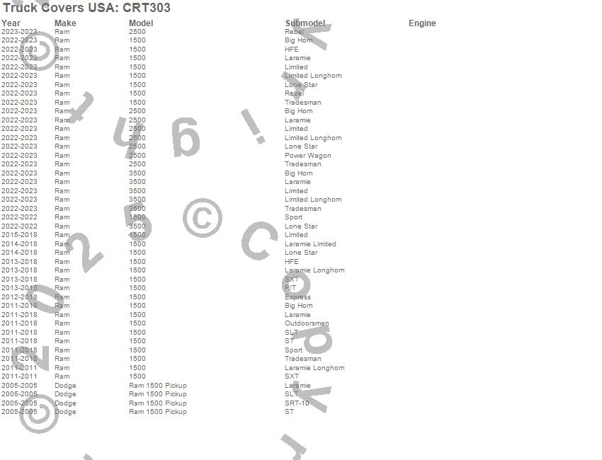 Below is an abbreviated list of applications for the American Work Cover.1500, 2500, 3500, Ram 1500, Dodge, Ram, 2023, 2022, 2018, 2017, 2016, 2015, 2014, 2013, 2012, 2011, 2005