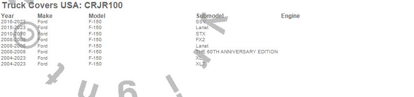 Brand: Truck Covers USAPart Number: CRJR100Tonneau Cover Type: 96 in.UPC: 887753771483