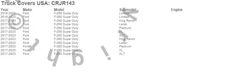 Below is an abbreviated list of applications for the American Work Cover JR..F-250 Super Duty, F-350 Super Duty, Ford, 2023, 2022, 2021, 2020, 2019, 2018, 2017