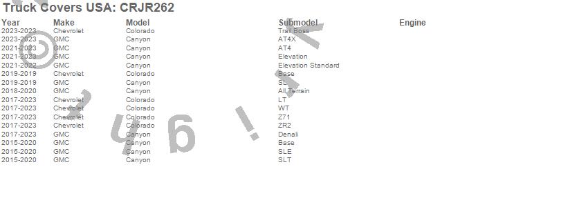 Below is an abbreviated list of applications for the American Work Cover JR..Canyon, Colorado, Chevrolet, GMC, 2023, 2022, 2021, 2020, 2019, 2018, 2017, 2016, 2015