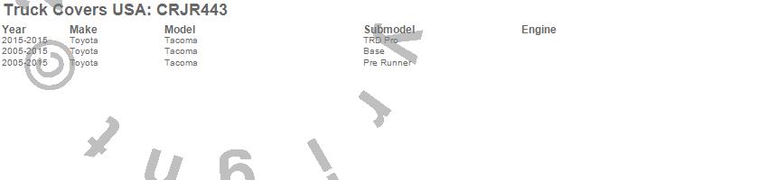 Brand: Truck Covers USAPart Number: CRJR443Tonneau Cover Type: 60 in.UPC: 887753772558