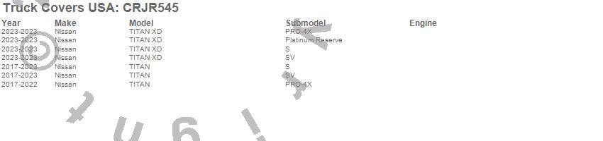 Below is an abbreviated list of applications for the American Work Cover JR..TITAN, TITAN XD, Nissan, 2023, 2022, 2021, 2020, 2019, 2018, 2017