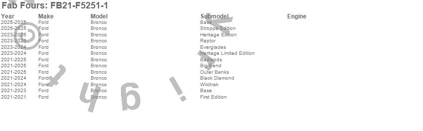 Below is an abbreviated list of applications for the Lifestyle Winch Front Bumper.Bronco, Ford, 2025, 2024, 2023, 2022, 2021