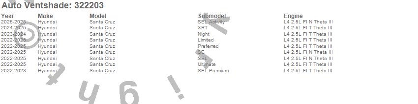 Below is an abbreviated list of applications for the Aeroskin Smoke Hood Protector.Santa Cruz, Hyundai, 2025, 2024, 2023, 2022