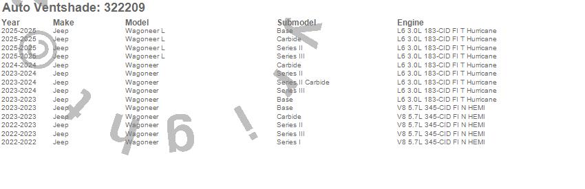 Below is an abbreviated list of applications for the Aeroskin Smoke Hood Protector.Wagoneer, Wagoneer L, Jeep, 2025, 2024, 2023, 2022
