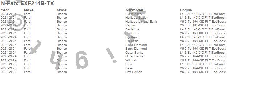 Brand: N-FabPart Number: EXF214B-TXNerf/Step Bar (Wheel to Wheel) Type: 2 Steps Per Side - Textured BlackUPC: 843206126590