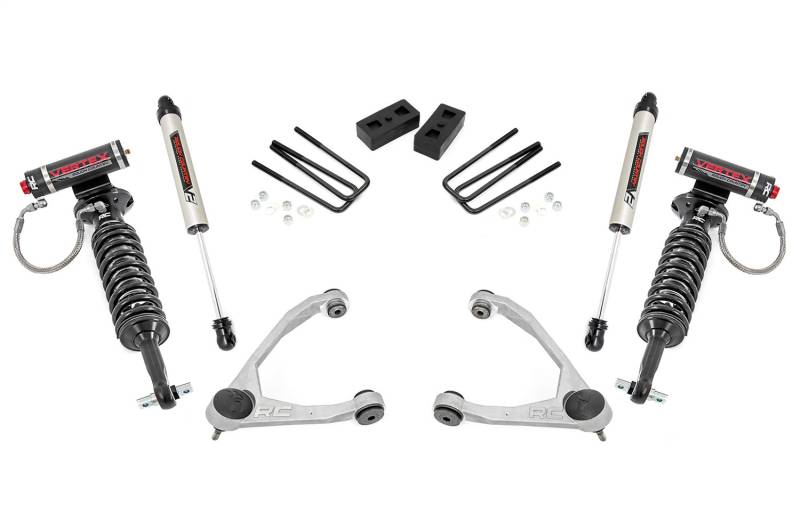 Brand: Rough CountryPart Number: 19857Lift Kit-Suspension w/Shock Type: 3.5 in. Lift - Incl. Strut Spacers - Forged Upper Control Arms - 1-.5 in. Lift Blocks - U-Bolts - Vertex Adjustable Coilovers - V2 Monotube ShocksUPC: 843030198626