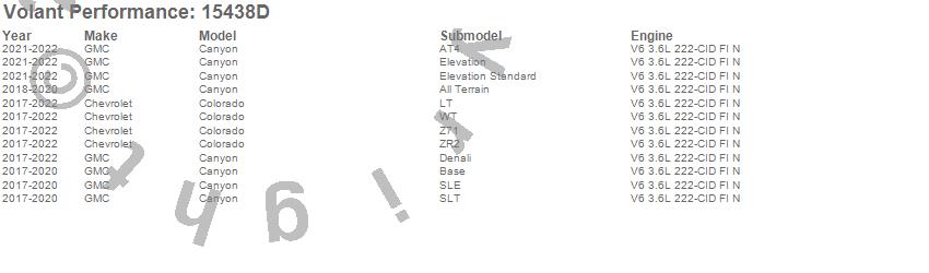 Below is an abbreviated list of applications for the Cold Air Intake Kit.Canyon, Colorado, Chevrolet, GMC, 2022, 2021, 2020, 2019, 2018, 2017