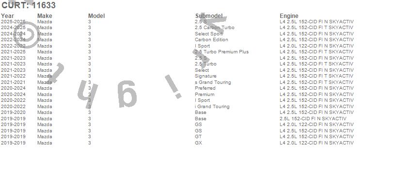 Below is an abbreviated list of applications for the Class I 1.25 in. Receiver Hitch.3, Mazda, 2026, 2025, 2024, 2023, 2022, 2021, 2020, 2019