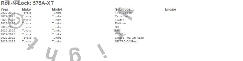 Below is an abbreviated list of applications for the Roll-N-Lock A-Series XT Truck Bed Cover.Tundra, Toyota, 2025, 2024, 2023, 2022
